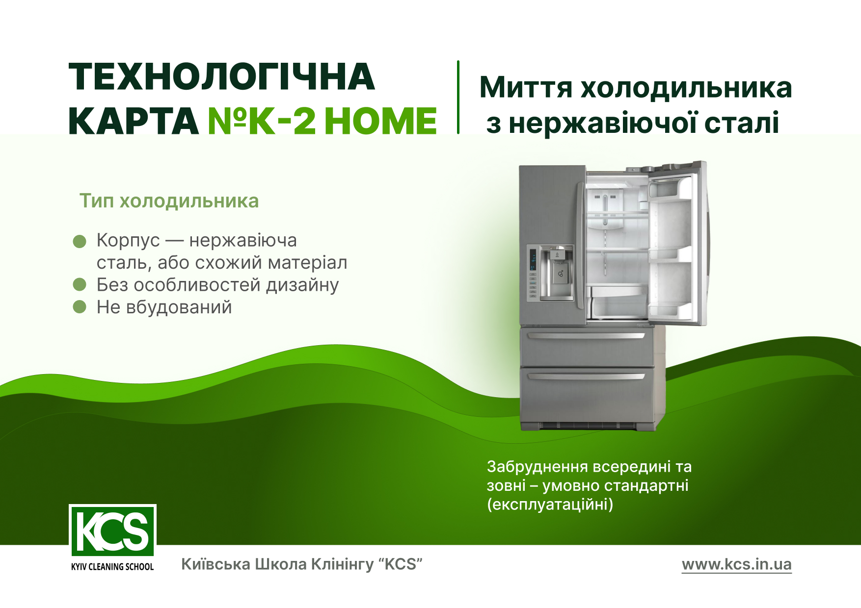 Техкарта К-2 HOME показує, як мити холодильник з нержавійки без ризику зіпсувати фасад і без нескінченних експериментів.